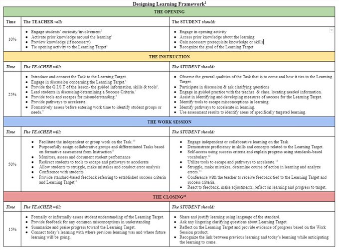 - lists of tasks for teachers, students for sections of lesson – opening, instruction, work session, closing .image